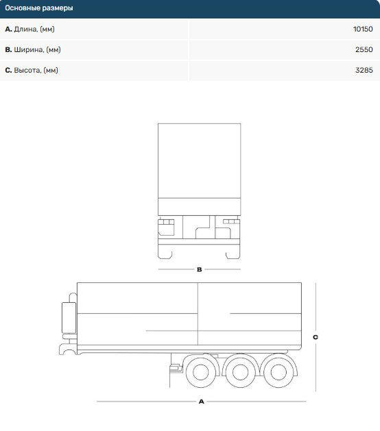 Габариты модели составляют 10150x2550x3285 мм (ДxШxВ), а высота седельно-сцепного устройства (ССУ) — 1250 мм.