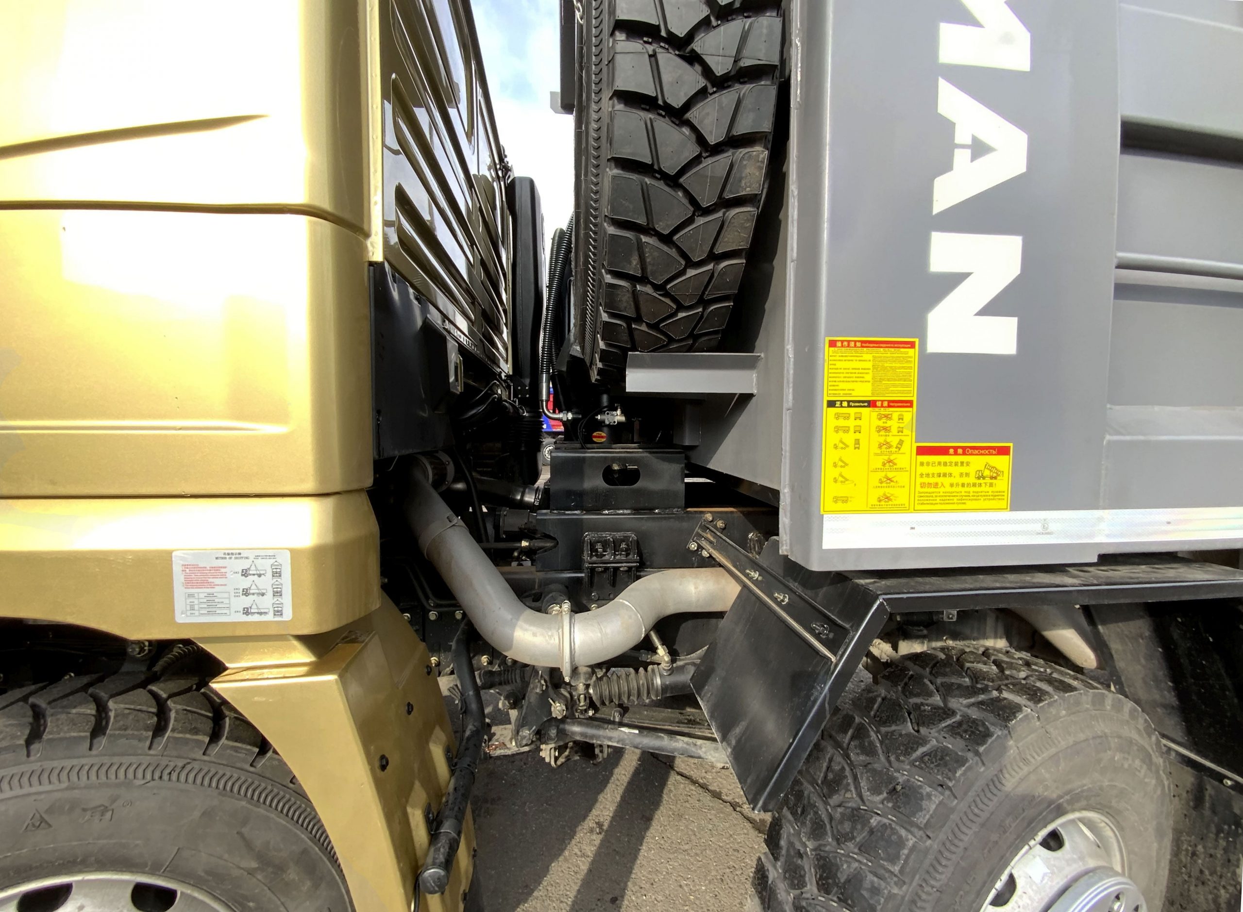 Колеса располагаются по формуле 8х4 — всего их 8, 4 являются ведущими. Такое техническое решение часто применяется в грузовой и спецтехнике ввиду своих преимуществ: оно обеспечивает устойчивость транспортных средств и положительно сказывается на их грузоподъемности. Используются бескамерные шины 315/80R22.5/315/80R22.5. Бескамерная конструкция снижает риски механических повреждений, способствует равномерному распределению нагрузки и повышает плавность вождения.