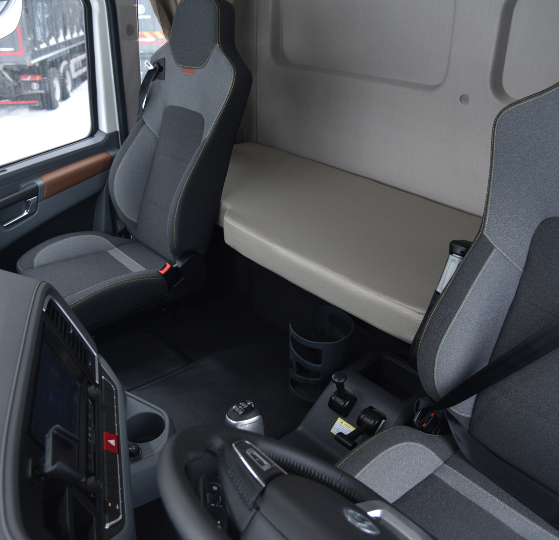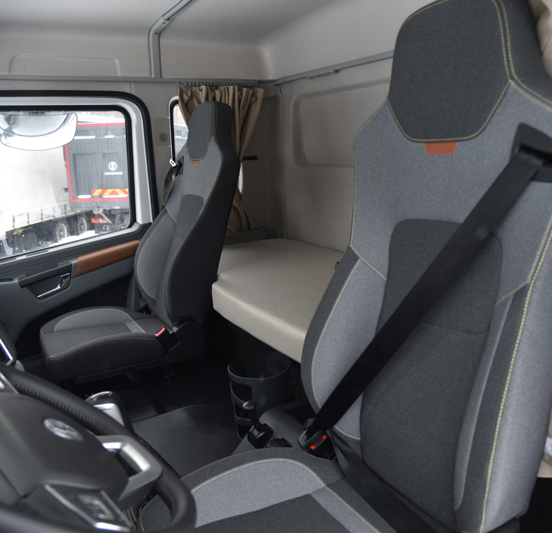 Кабина выполнена по технологии «MAN X5000», предусматривает два кресла и одно спальное место. Для комфортной работы даже в очень холодную погоду она утеплена и снабжена усиленной системой отопления и климат-контролем.