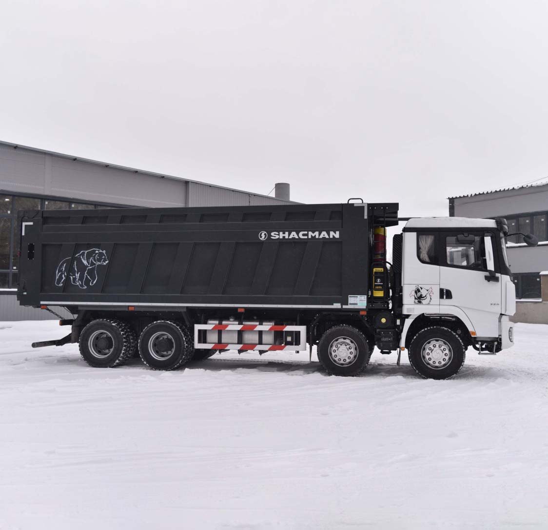 Самосвал SHACMAN X5000 8×4 WEICHAI 550 л.с. — вместительный и мощный самосвал для таких работ, где нужна отличная проходимость техники и способность перевозить действительно объемные и тяжелые грузы. Номинальная грузоподъемность модели — 41 000 кг. Чтобы перевозить такие значительные веса, нужен не просто вместительный, но и надежный кузов. Инженеры бренда позаботились об этом. За прочность конструкции отвечают толстый металл (8 мм на дне и 6 мм по боковой поверхности), продольные и поперечные ребра жесткости.